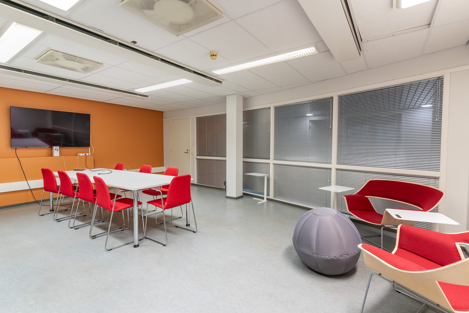 Valimo Centerissä on ilo ideoida uutta tai kokoontua porukalla: valimolaisten vuokrattavissa on useita, hyvin varusteltuja kokoustiloja 2–20:lle henkilölle. Punateemaiset huoneet; Paja, Verstas ja Tehdas sijaitsevat Valimotie 13a:n rakennuksessa. Erityisesti neuvottelutila Tehdas soveltuu hyvin pitkienkin palaverien kokouspaikaksi, sillä sen sisäänkäynti sijaitsee Ravintola Factoryn katetun valopihan kulmauksessa. Tila on suuri ja siellä on neuvottelupöydän lisäksi paikkoja myös rennompaan oleskeluun.